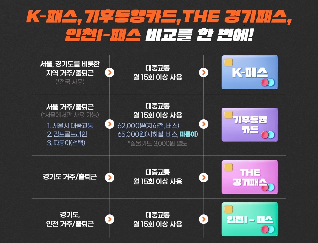 또한 서울 안에서 이동을 많이 한다면 기후동행카드가, 서울과 경기, 인천 사이를 오간다면 K패스가 유리하다고 할 수 있습니다.